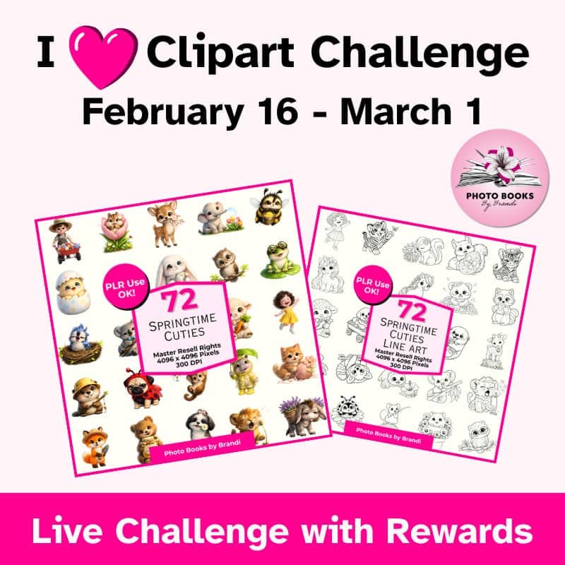 Hi, I spent the past couple of days finishing up a couple of products for a bundle sale. Also, I just finished editing my St. Patrick's Day clipart for the membership. Plan to get it added later tonight. -------------------------------------- PLR / Business / Personal Use Products Brandi has this I Heart Clipart Challenge, currently available now thru March 1st. You'll get spring clipart, quick trainings and feedback via a popup FB Group. The challenge has already begun but you have plenty of...